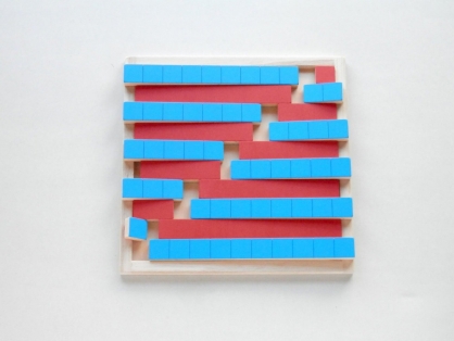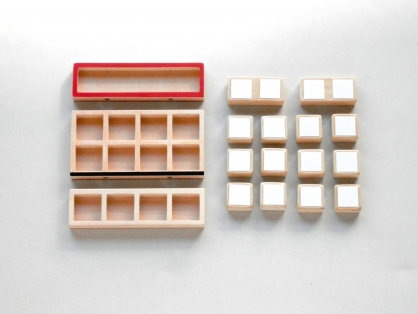 仕切りのあるところにブロックを一つずつ入れることにより、数えやすくなります。