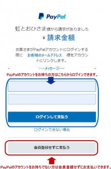 こちらの画面では、PayPalのアカウント(会員登録)がある方とない方では操作が異なります。