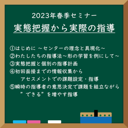 2023年春季セミナー2023年春季セミナー『実態把握から実施の指導』指導法と演習動画販売開始!